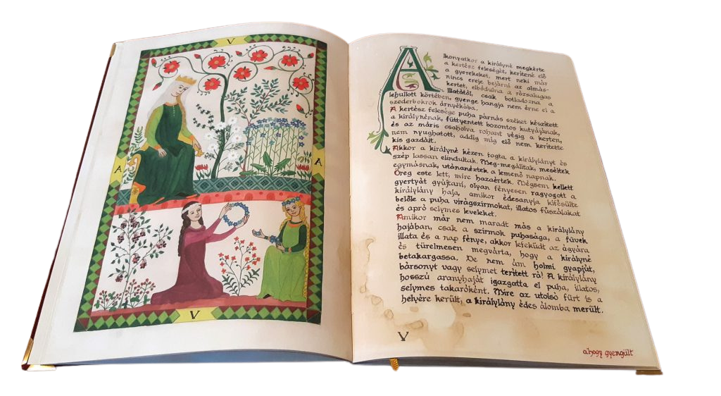A könyv kivitele méltó a tartalomhoz: bársonyhatású, arany motívumokkal díszített borító, kódexszerű elrendezés és gazdagon illusztrált oldalak teszik igazi műtárggyá.
